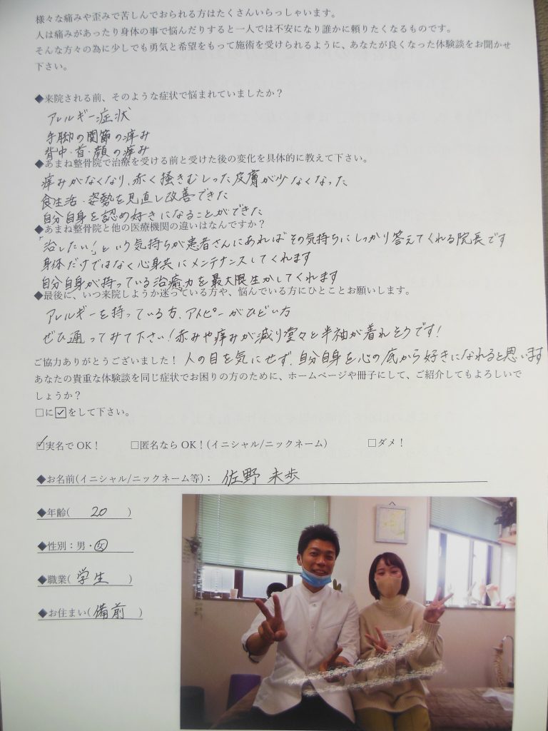 アレルギーを持っている方、アトピーがひどい方、ぜひ通ってみて下さい!