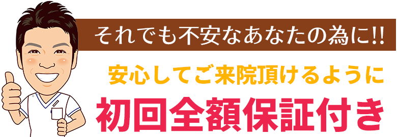 初回の施術で効果を実感できなければ、初回施術費を全額返金します。